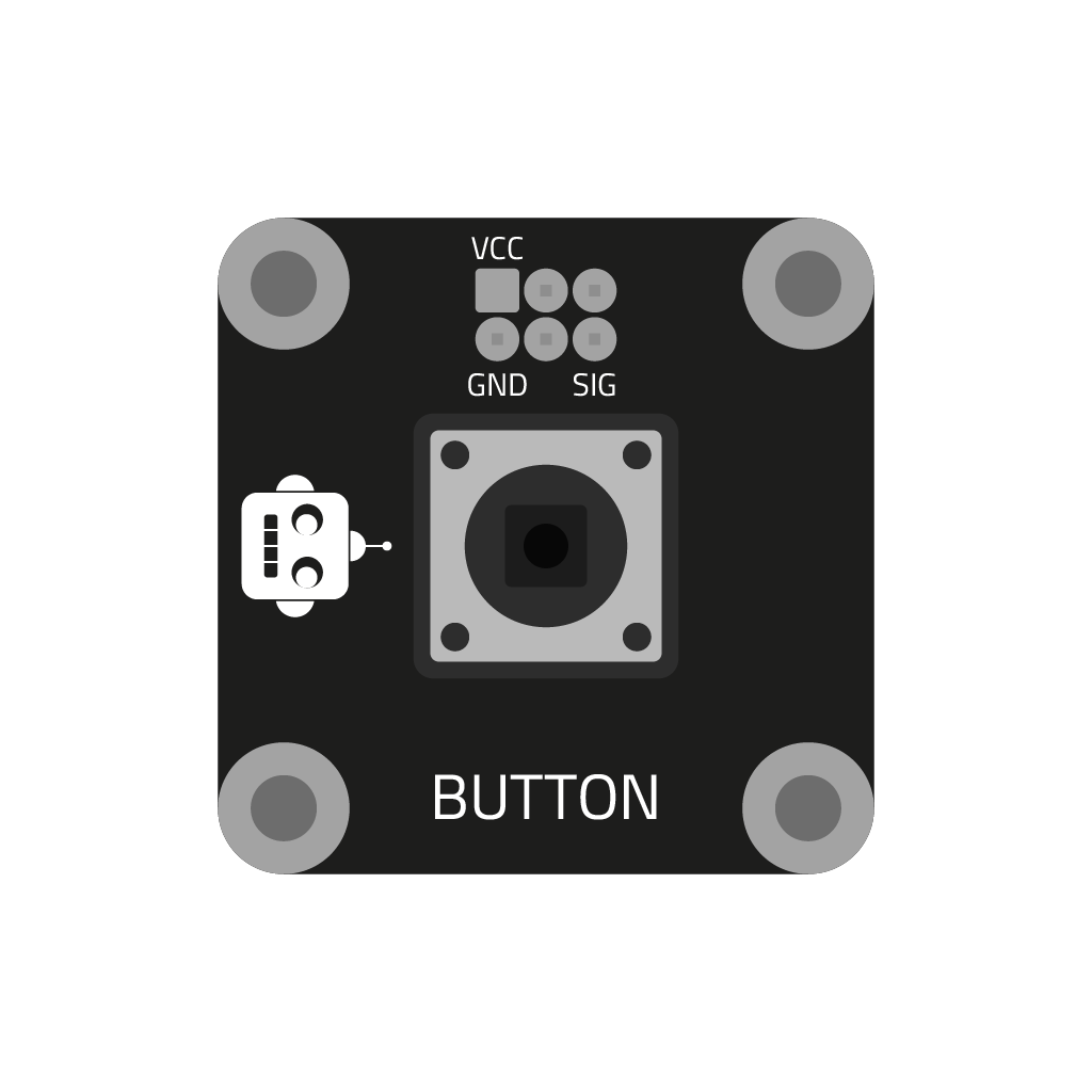 Tlačítko je nejjednodušší ovládací prvek. Stisknutí tlačítka představuje spojení (uzavření) elektrického obvodu, stejně jako když spojíme 2 drátky k sobě. To umožní průchod elektrického proudu do vstupu micro:bitu. Tlačítkem můžeme ovládat všechny další bločky v balení, jako například Neopixel, motorek, nebo jednotlivá barevná světla.