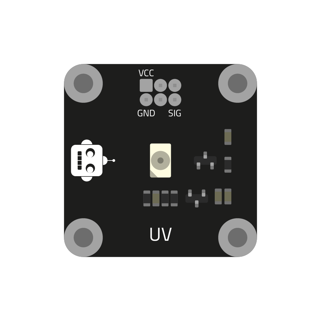 Tento senzor je schopen snímat ultrafialové (UV) záření, které je pro lidské oko opět neviditelné. Takové záření přichází například ze slunce. Díky tomu jsme schopni měřit, jak silné UV záření dopadá na senzor, což může být užitečné pro monitorování bezpečnosti na slunci nebo detekci UV světelných zdrojů.